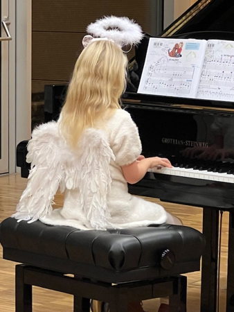 Das Klavierseminar wurde umrahmt von zwei weiteren Veranstaltungen, die sich an die Basis der Musikkultur wandten, also an Kinder und alle, die gerne Musik machen. Mit „Hey, Beethoven! Aufnahme gefällig?“ konnten acht junge PianistInnen teils kostümiert als Engel oder Prinzessin mit einem Bären namens Beethoven ins Gespräch kommen und ausgewählte Klavierstücke als Videoclip von der Komponistin Marie Awadis aufnehmen zu lassen. Eine Matinee als Generationskonzert, an dem u.a. auch mal sechshändig von drei Generationen musiziert wurde, rundete die neue, dreitägige Veranstaltungsform des Klavierseminars erfolgreich ab. Dank Prof. Kupiec empathischer Art zu lehren werden nicht nur die angehenden PianistInnen sondern auch die Lehrenden eine nachhaltige Motivation und Begeisterung für die Arbeit an den Werken aus dem musikalischen Kosmos behalten, in dem sich Prof. Kupiec hervorragend auskennt. Was für ein Glückstreffer! Was für eine weibliche Power par excellence!